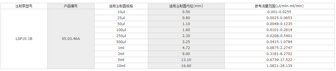 LSP10-1B注射器內(nèi)徑輸入功能:可從列表中選擇注射器或者直接輸入注射器內(nèi)徑確定注射器