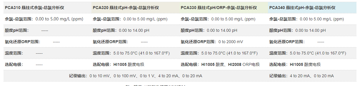 余氯-總氯技術(shù)指標(biāo)【適用于PCA310、PCA320、PCA330、PCA340】