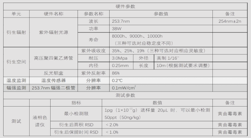 1.準(zhǔn)確測(cè)定黃曲霉毒素含量,需將黃曲霉毒素 B1 和 G1 衍生,提高其熒光強(qiáng)度,這種用于液相-熒光法測(cè)定黃曲霉毒素時(shí)進(jìn)行柱后光化學(xué)衍生系統(tǒng)。